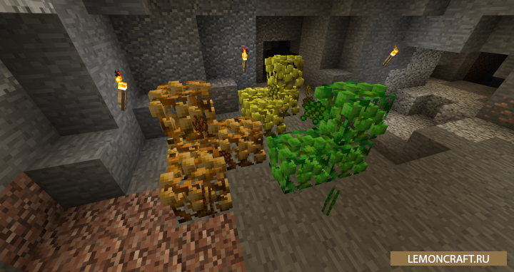С Ore Shrubs у вас появится возможность выращивать в глубоких пещерах особые виды кустарников, плоды которых имеют свойства самородков и могут быть использованы для создания руд.